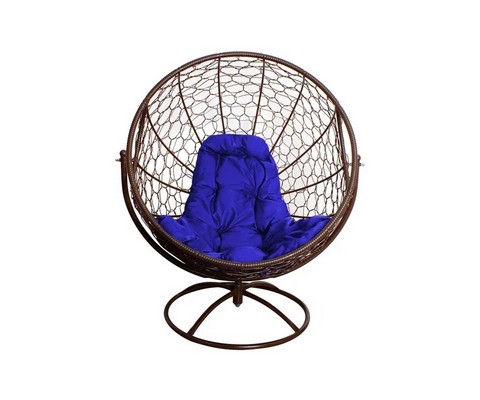 Вращающееся кресло с ротангом (коричневое с синей подушкой)