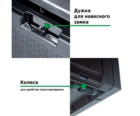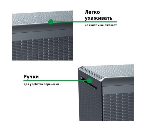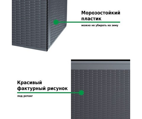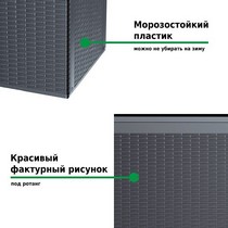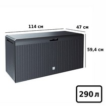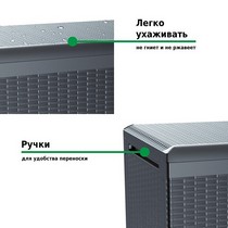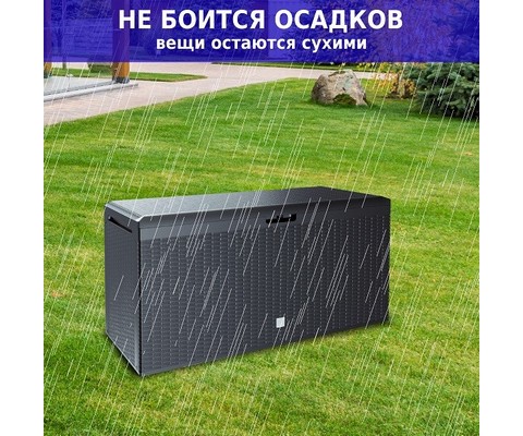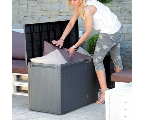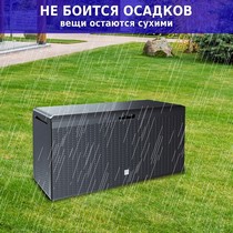 Ящик Prosperplast Rato Plus используется для хранения различных предметов и садового инвентаря.