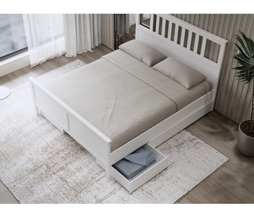 Для кроватей размерами 140х200 см, 160х200 см и 180х200 см возможно размещение до 3 ящиков с каждой из сторон.