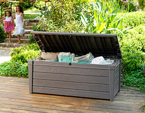 Ящик садовый пластиковый Brightwood Keter очень удобен в плане хранения всевозможного дачного инвентаря. Садовый пластиковый ящик способен выдержать вес двух человек, на крышке имеется автоматический стопор. Этот садовый ящик легко переносит влагу и ультрафиолет, крышки, хорошо вентилируется.