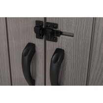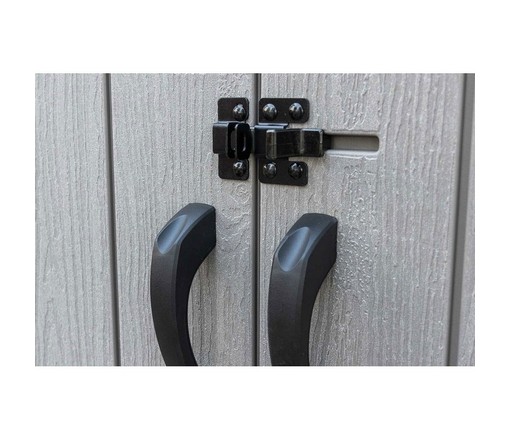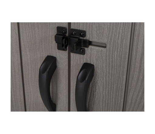Две распашные дверцы на 3-х петлях, которые можно закрыть на шпингалет или навесной замок (приобретается отдельно).