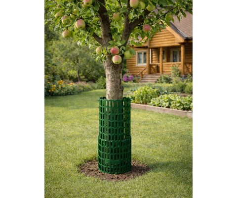 Гибкие пластиковые секции с перфорацией обеспечивают вентиляцию и свободу роста, а удобные замки позволяют быстро зафиксировать защиту на стволе.