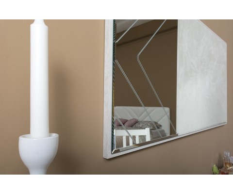 Зеркало дополнено фрезеровкой, что придает ему элегантный и стильный вид.