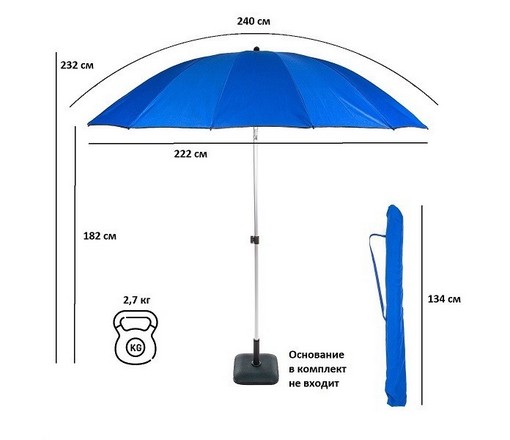 Зонт Green Glade А2072 синий имеет наклонный купол (удобно регулировать для получения комфортной тени).