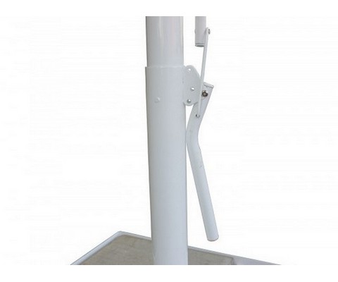 Открытие и закрытие осуществляется при помощи рычага подъема. Нижний и верхний фиксаторы надежно удерживают зонт в выбранном положении.