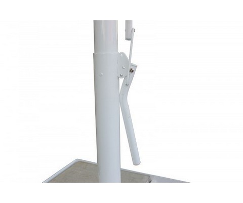 Открытие и закрытие осуществляется при помощи рычага подъема. Нижний и верхний фиксаторы надежно удерживают зонт в выбранном положении.