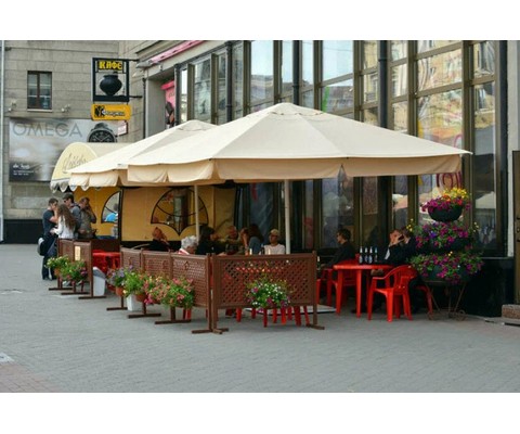 Просторный и сверхнадежный квадратный зонт с телескопическим механизмом и усиленной конструкцией, предназначенный для защиты больших пространств - летних кафе, ресторанных веранд, зон барбекю или бассейнов.