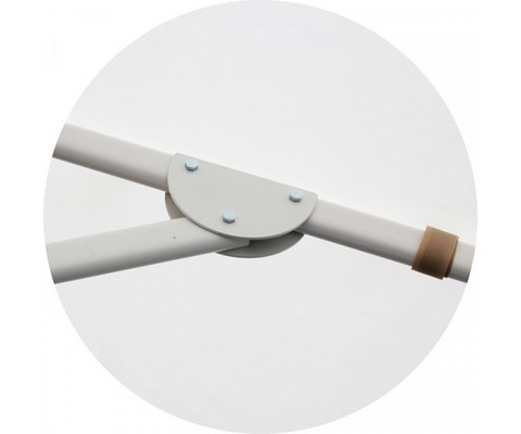 Стойка с порошковым покрытием диаметр 40 мм устойчива и надежна, 8 спиц сечением 20*10 мм обеспечивают равномерное натяжение тента и прочность конструкции, на торцах всех деталей установлены пластиковые декоративные заглушки.