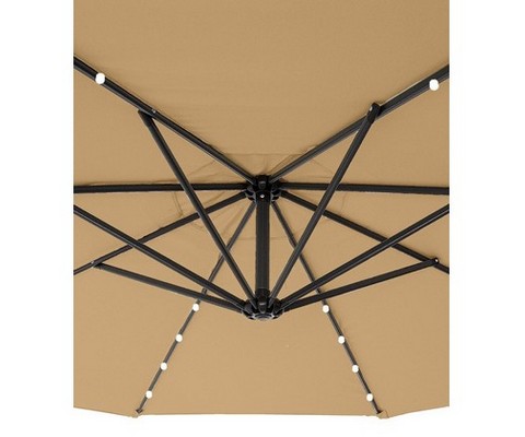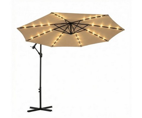 Инновационный садовый зонт со встроенной LED-подсветкой на солнечной батарее, создающий уютную атмосферу в вечернее время.