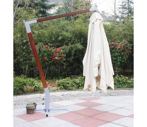 Стойка зонта выполнена из металла и древесины твердых пород,